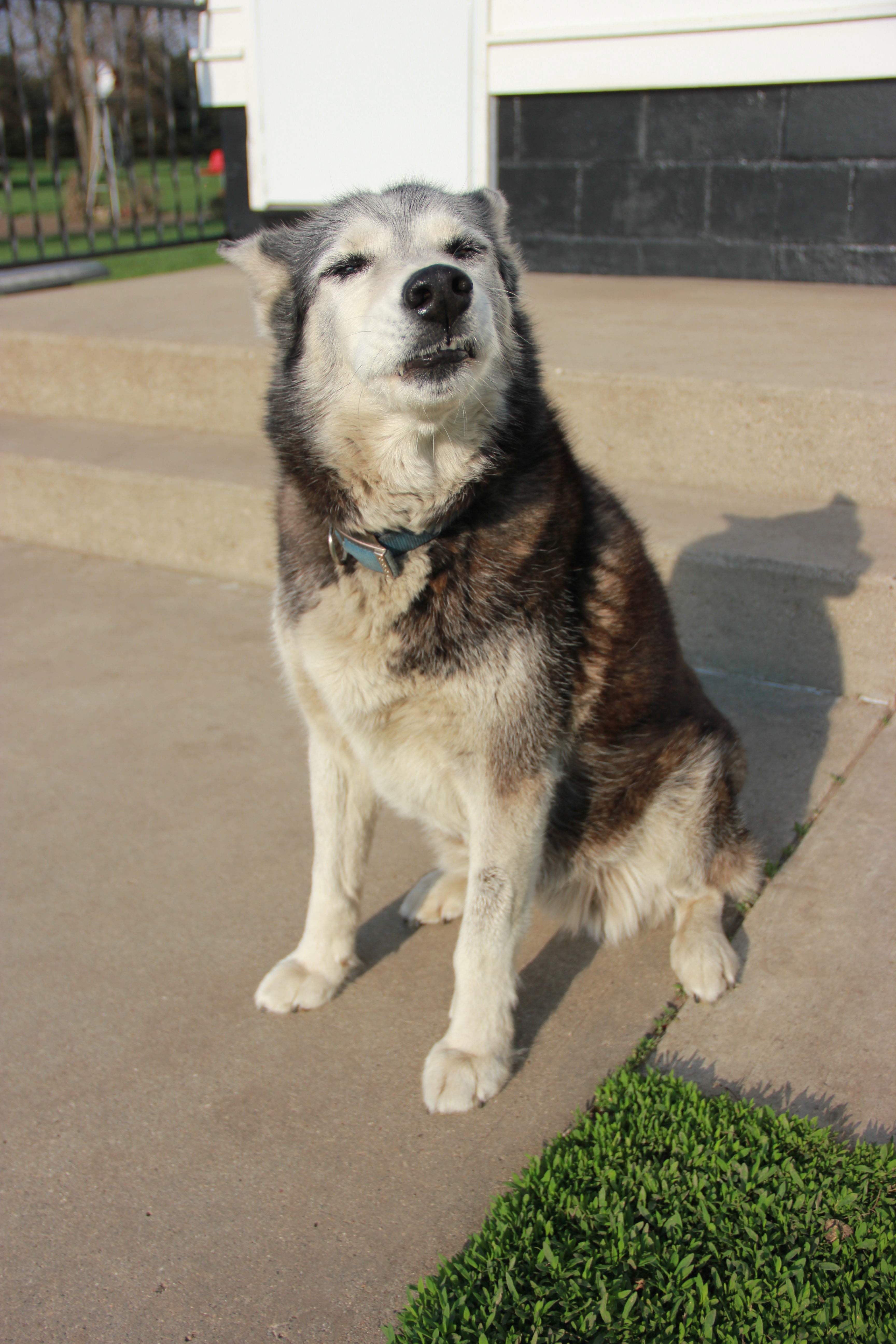 She is a Husky/Black Lab mix (hard to identify here with her funny expression). Guess that’s why we sometimes call her “Silly Lily” 🙂