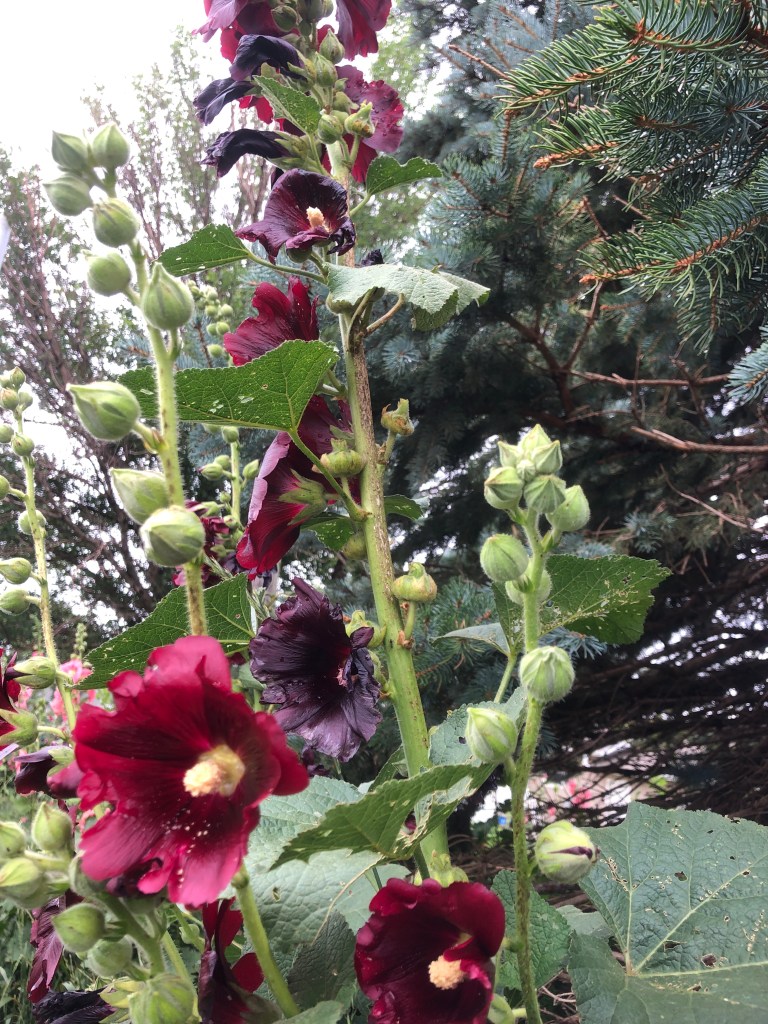 neighbor’s hollyhocks
